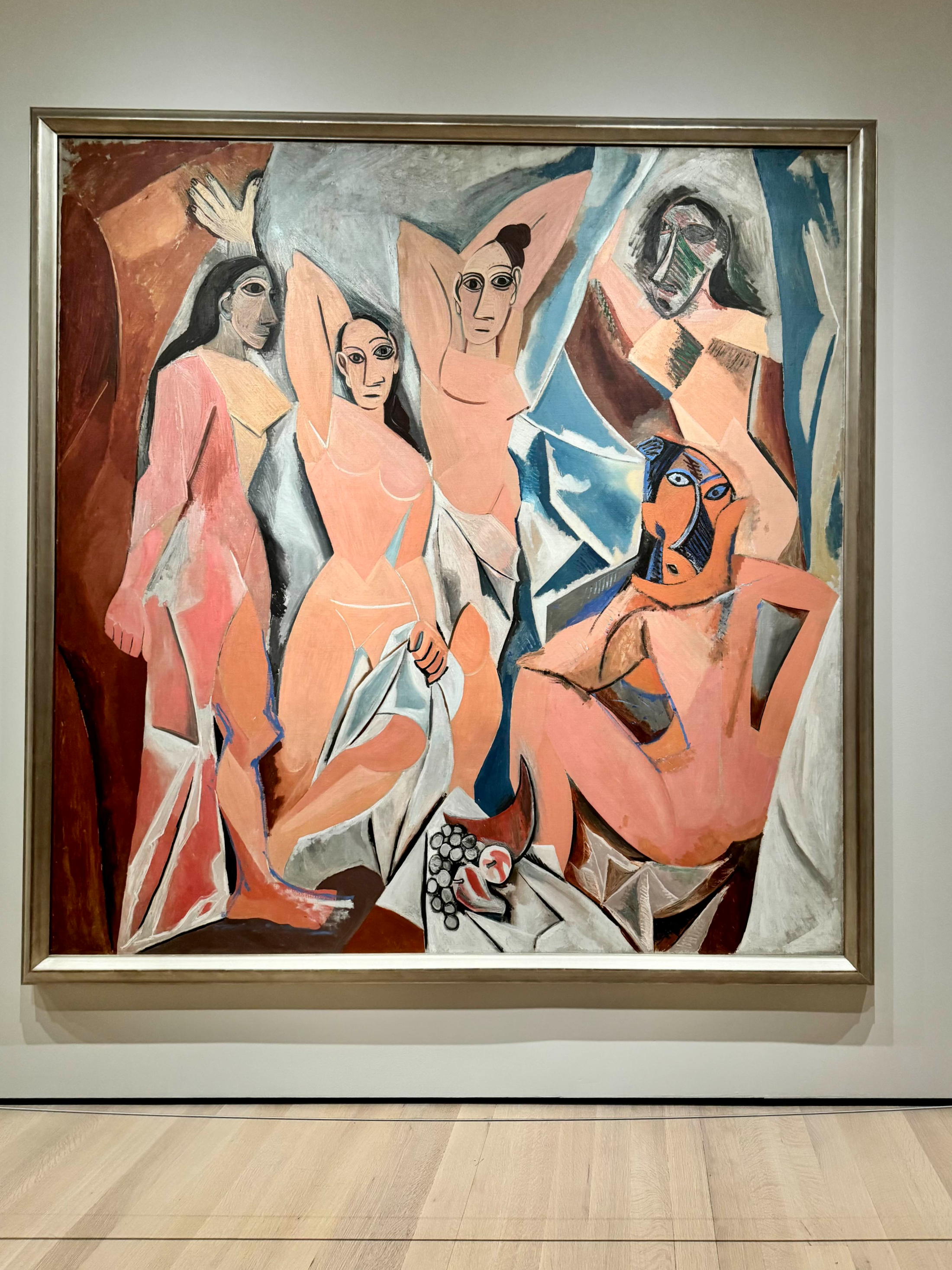 피카소 최고의 혁명적 걸작이라는 아비뇽의 처녀들(1907). 고등학교 땐가 미술책에 나왔던 것도 기억난다. 이건 뭐지라고 생각했던 그 의아함까지도 기억난다. 그러나 내가 게르니카를 보고 아무것도 느끼지 못한 것처럼 이 그림 앞에서도 무감했던 이유가 내 무지와 경험의 부족 때문인지 고전적 미의 형식을 파괴하고 뒤트는 현대 미술에 익숙해진 것인지는 아직 알 수 없다. 세잔의 정물화에서 설명했던 투시법을 무시하고 여러 각도의 시점을 동시에 표현해서 사물을 분해하고 재조립하는 일련의 과정들이 담긴 그림들을 나는 이미 많이 봐왔는데 저 그림을 직접 본다고 해서 충격과 감동을 받아야 하는지는 아직도 잘 모르겠다. 그러나 입체파를 탄생시킨 현대 미술의 구분점인 이 그림을 꼭 봐야 한다는 것 하나는 확실한 사실이라고 하니 볼 수 있으면 보자! 그리고 아비뇽은 바르셀로나의 아비뇽 거리라고 한다. 몰랐;; 이게 더 충격.