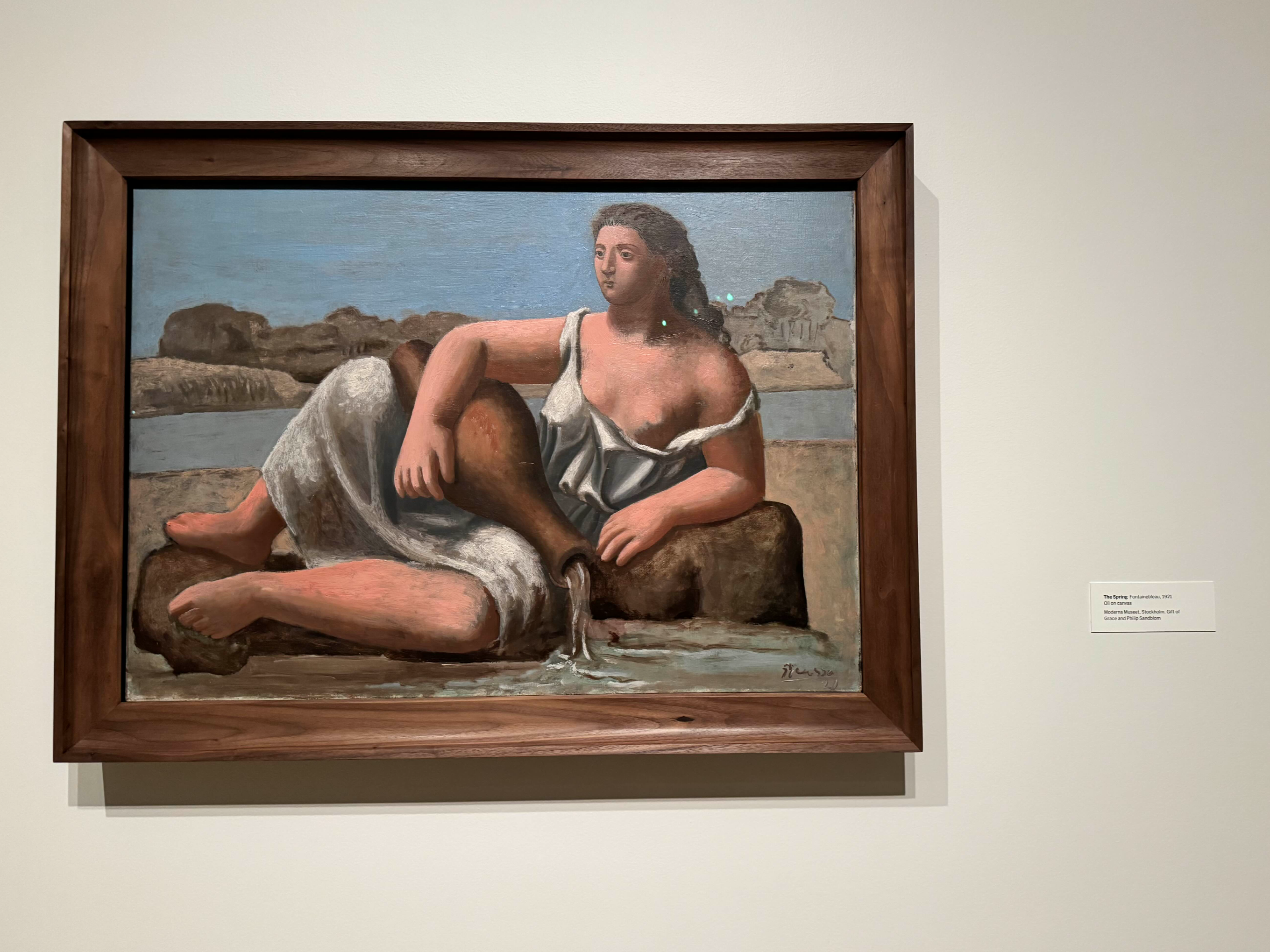 고대 그리스 투니크를 입은 세 명의 여성이 샘에서 물을 긷고 있다. 청록색 배경 앞에 갈색 계단과 항아리, 여인들의 옷 색깔의 배색이 정말 아름답고 조각처럼 입체적이면서도 평면적인 구성이 독특하다. 물을 긷는 일상적 행위가 영원한 의식처럼 승화된 고전적 장면이라는데 화풍도 그리스 도자기 그림이나 폼페이 벽화를 연상시켜 정말 인상 깊었다. 피카소한테 천재라고 하면 쌀로 밥 짓는 소리겠지.