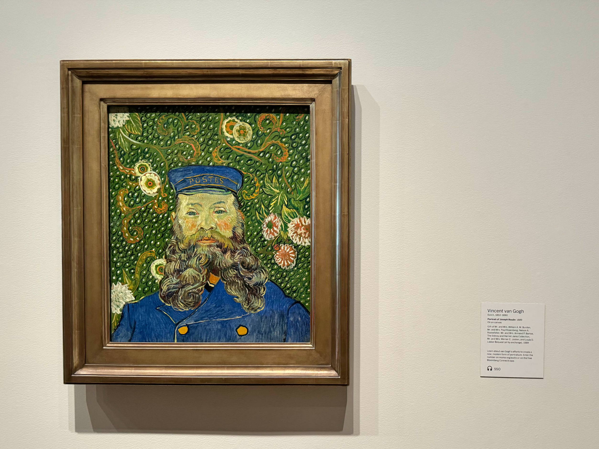 고흐의 친구이자 후원자였던 조제프 룰랭. 고흐가 정신적으로 힘들 때 곁을 지켜주어서인지 아를에서 고흐가 가장 많이 그린 인물로 가족도 여러 차례 그렸다고 한다. 그림에서도 뭔가 애정이 드러나지 않나. 정말 예쁜 그림. 초록색 바탕에 화려한 꽃무늬 배경과 붓터치와 윤곽선이 강렬해서 눈을 뗄 수가 없었다. 평면적 배경과 장식적 패턴은 일본 우키요에 영향을 받았고 고흐가 일본의 자연주의적 회화를 본 후 이를 계기로 밝은 화풍으로 색채에 변화를 주었고 강렬한 노란색과 푸른색을 많이 사용하게 되었다고 한다. 이 그림을 보고 탕기 할아버지의 초상화를 생각했던 것도 그 때문이 아닐까 하는 생각이 들었다.