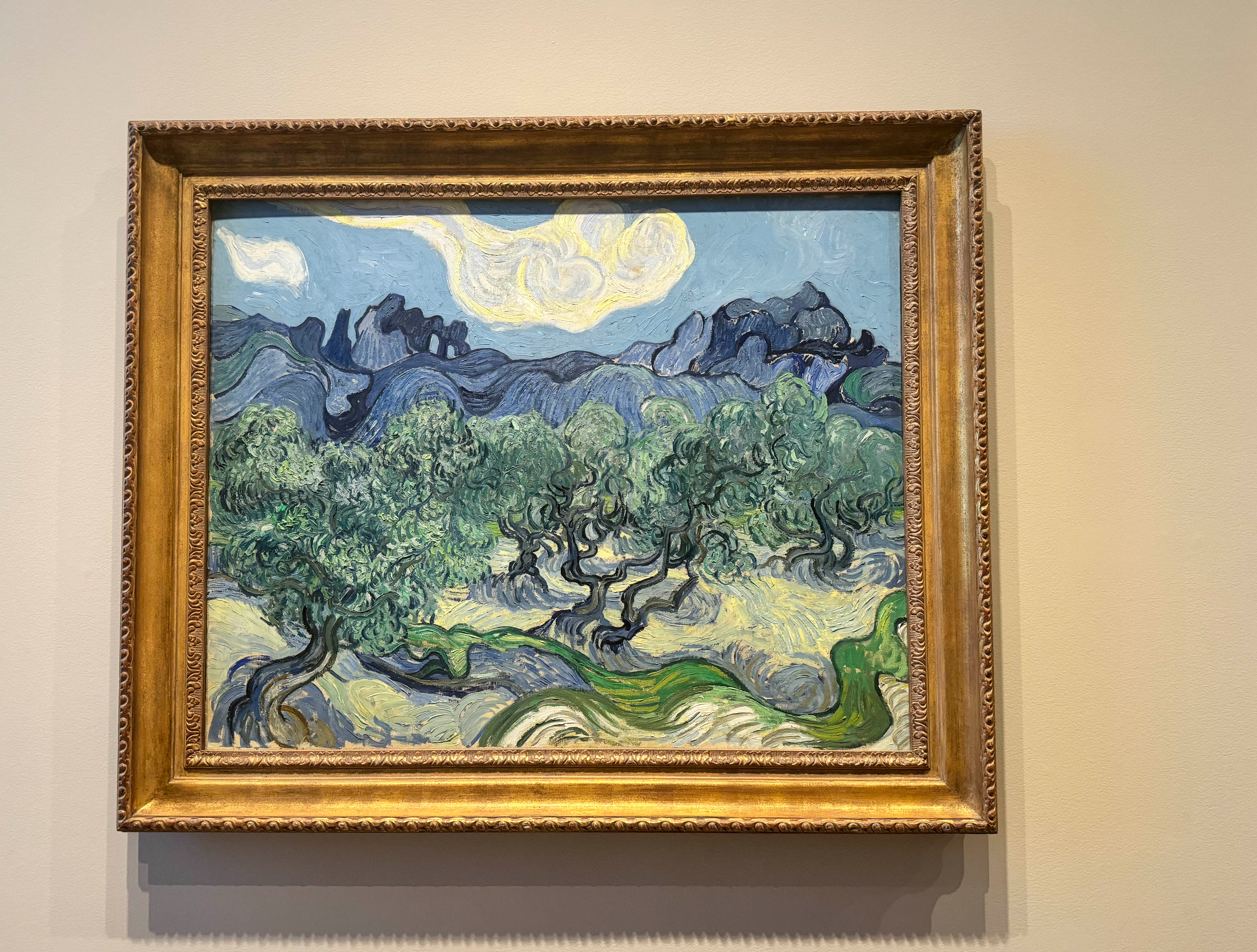 고흐는 뜨거운 햇살과 올리브 나무들이 자라나는 아름다운 들판, 그리고 푸른 하늘이 없었다면 생레미에서 불안과 우울을 견디기 힘들었을 것이다. 생레미는 작물 경작에 적합하지 않아 고흐가 좋아했던 유채꽃과 메밀은 어디에도 없었고, 고향에 흔히 있던 헛간이나 오두막도 없었다고 한다. 그래서 고흐는 뒤틀리고 꿈틀대는 올리브 나무 숲을 연작으로 그렸다. 소용돌이치는 구름과 물결치는 대지, 살아 움직이는 듯한 나무줄기와 가지, 하늘과 땅, 나무 생명의 에너지를 주체하지 못하고 꿈틀거린다.