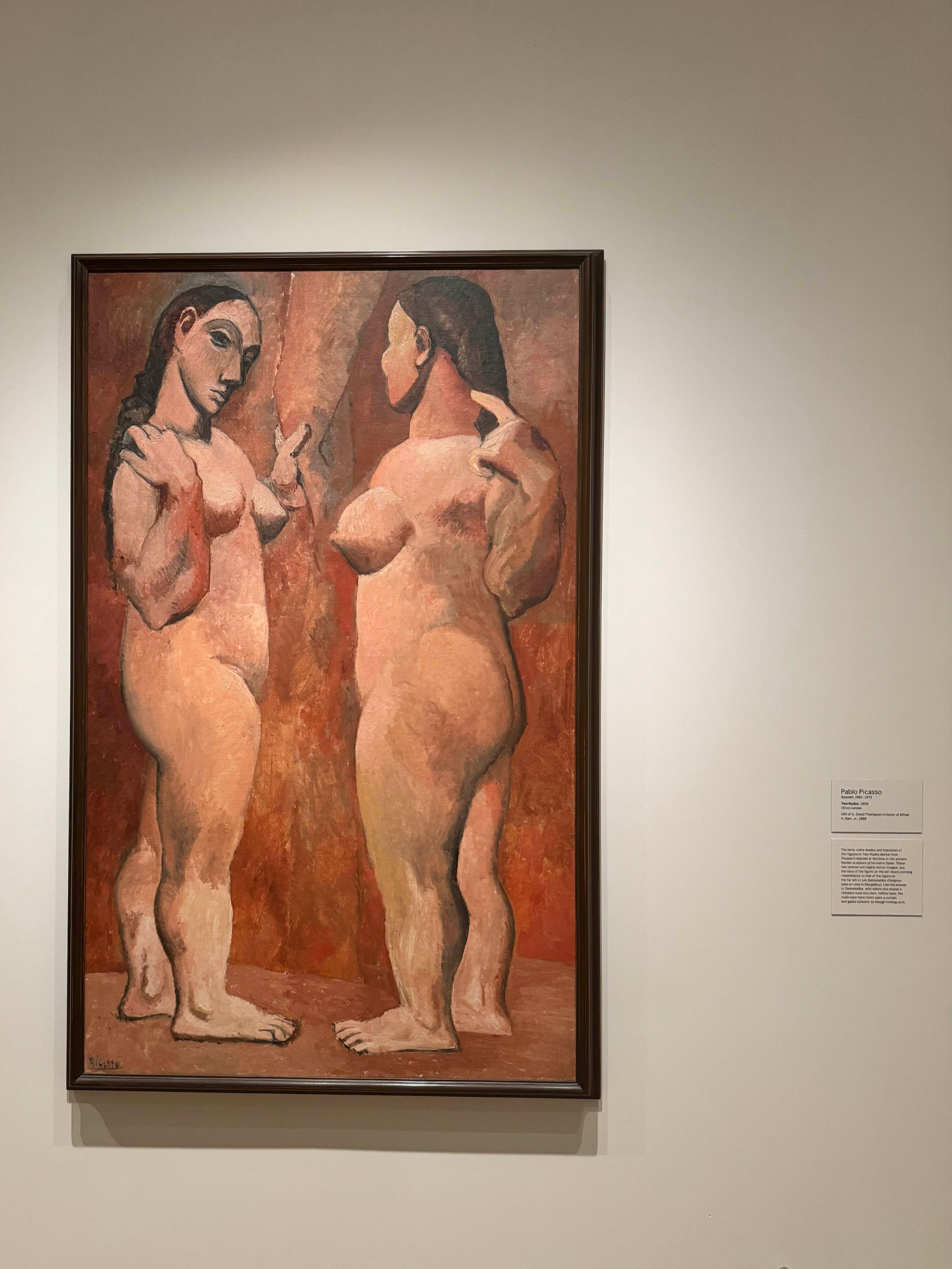 Two Nudes (1906) 아프리카 영향을 받기 시작한 시기의 작품으로 여성의 얼굴이 가면처럼 단순화되어 있고 육중하고 조각 같은 몸의 표현이 거칠고 원시적인 느낌을 주고 아래 '아비뇽의 처녀들'의 직접적 전조라고 할 수 있다고 한다.