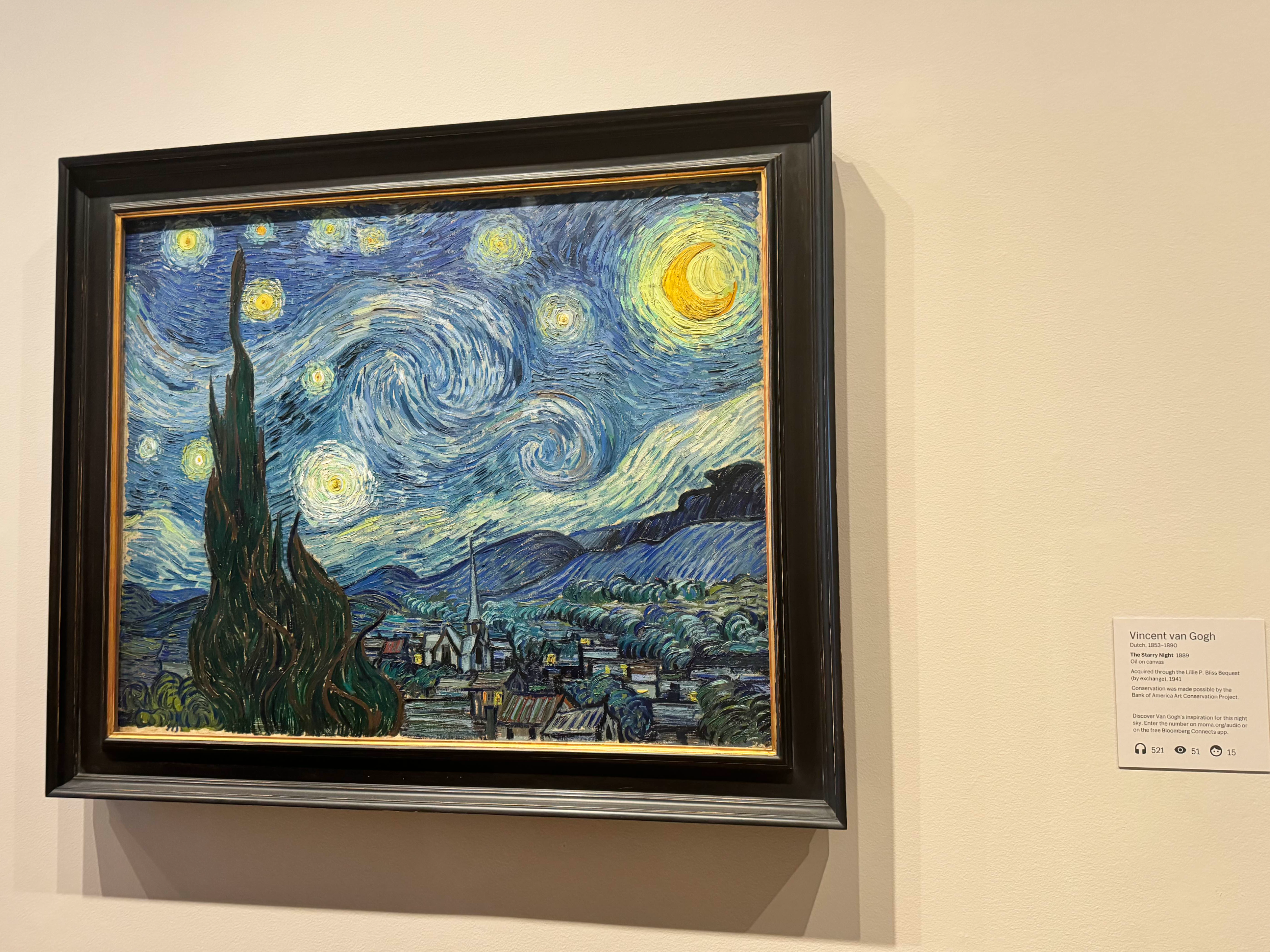 하지만 같은 소재의 고흐 작품도 오르세와 MoMA에서는 정말 달랐다. 오르세의 '론 강의 별이 빛나는 밤'은 어두운 전시실 속에서 스포트라이트를 받고 있었고 그래서 더 생생하고 강렬했던 반면 (그 안구에 느껴졌던 통증이 아직도 기억난다고 하면 과장이려나), MoMA의 '별이 빛나는 밤'은 차분하게 전시되어 있어 고요한 느낌이었다. 전시 연출에 따라 관객은 전혀 다른 경험을 하게 된다.
