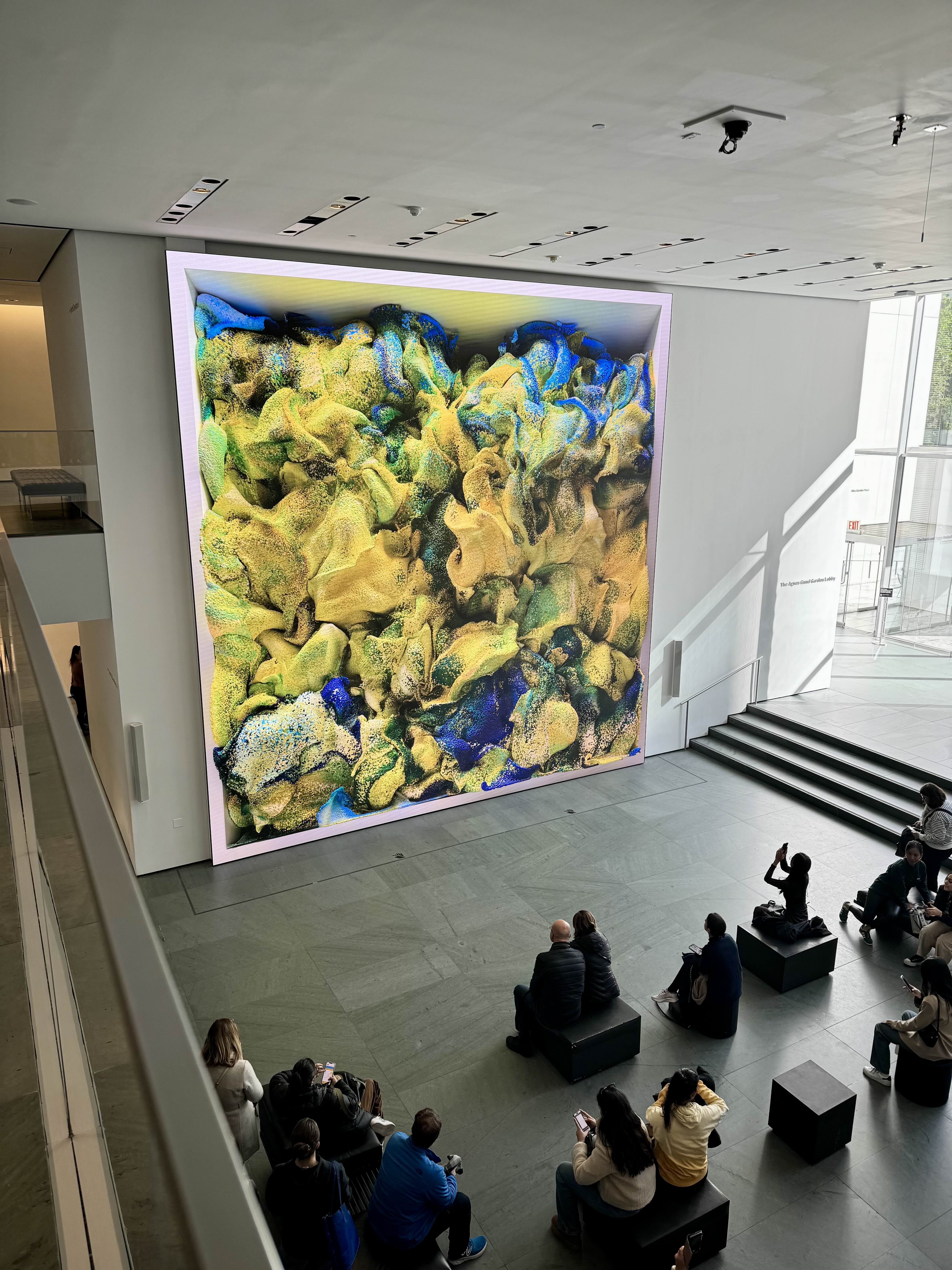 인상 깊었던 MoMA 아트리움(Atrium)의 중앙 대형 벽면에 설치되었던 전시. AI와 머신러닝을 이용해서 MoMA 컬렉션의 200년 이상의 예술 작품 데이터를 해석하고 변형시켰고 로비의 환경 변화를 인풋으로 받아서 반응한다고 한다. Data Sculpture이라는 예술 장르라고,, 어렵다.